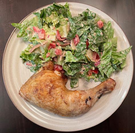 Chicken Leg and Salad By Andrea Wilson | December 23, 2025 What could be simpler? How about an air-fried chicken leg and a Romaine lettuce salad. Posted in Air Fryer, Chicken, Meal Photos, Poultry, Salads ← Halibut and SaladShredded Chicken Salad →