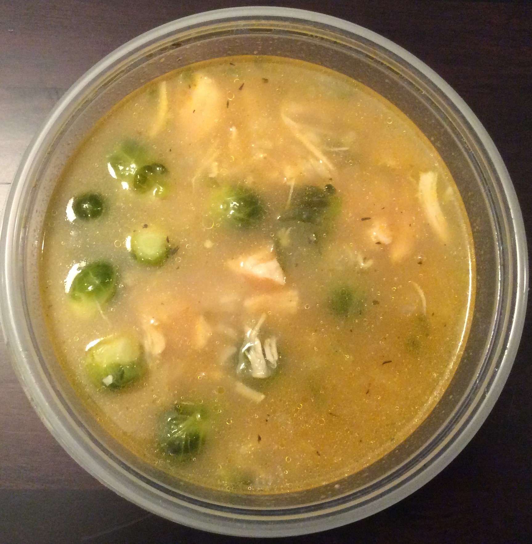 Made “Chicken Soup for the Low-carb Soul” today! Homemade chicken broth, canned chicken, onions, jalapeno pepper, Brussels sprouts, hot sauce, salt and pepper.